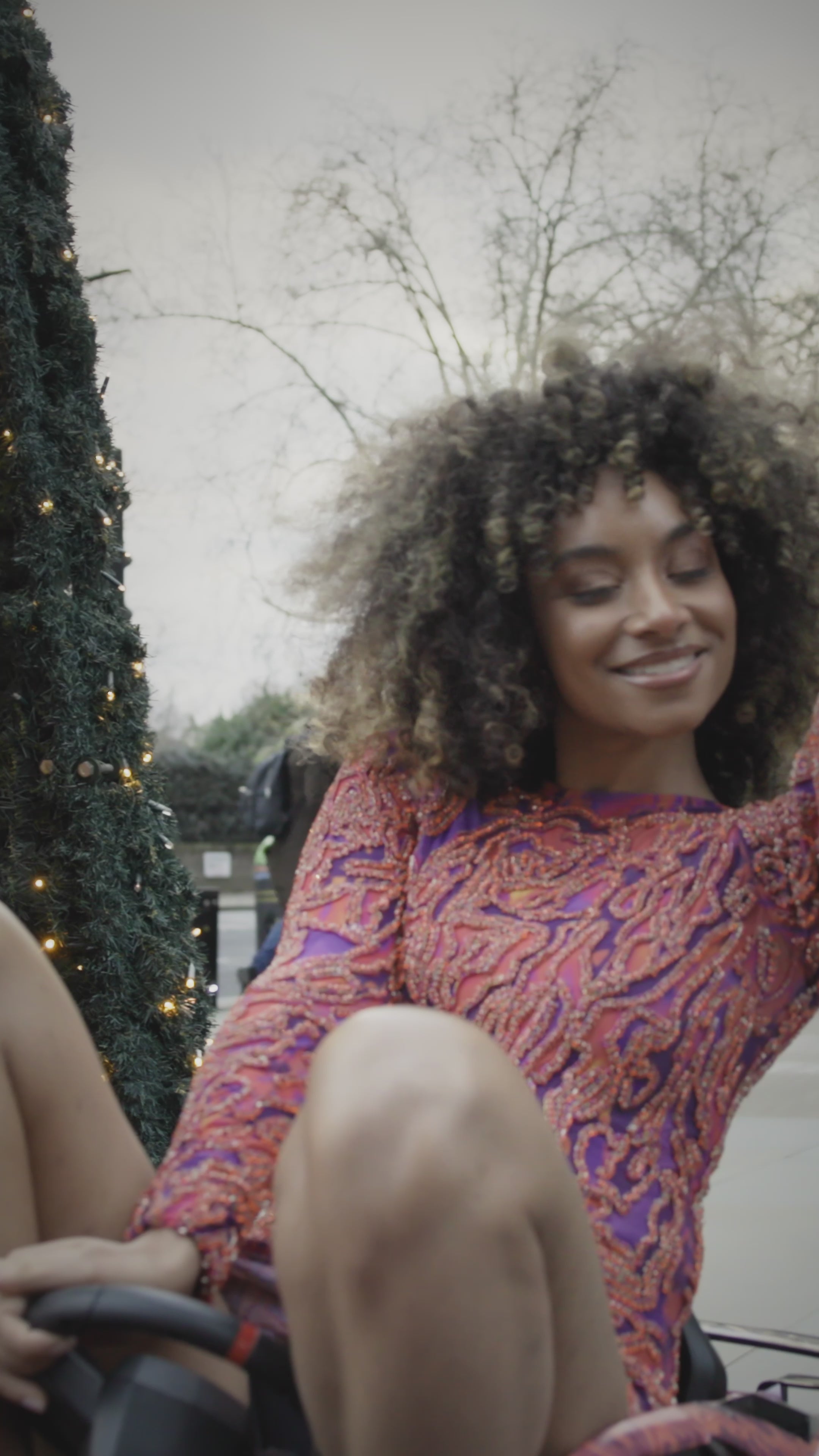 The Zuwa Dress, a mesmerising pink and orange mini design that radiates bold elegance and glamour. Fully adorned with intricate, hand-applied beadwork and crystals, this dress reimagines Onalaja’s iconic Zusi flame pattern through a dazzling camouflage effect. The shimmering crystal detailing transforms this timeless silhouette into a statement piece, perfect for those who love to shine.