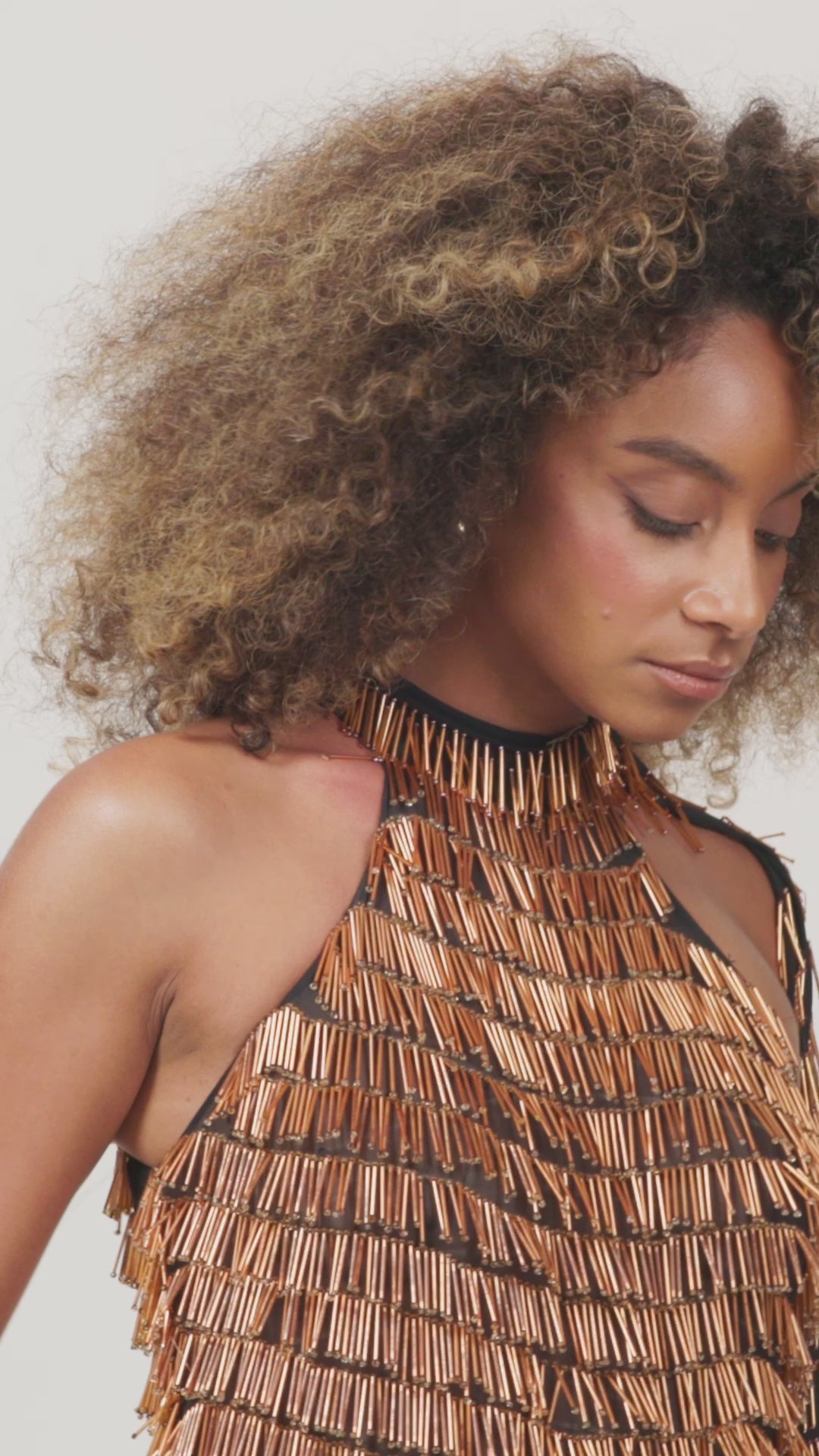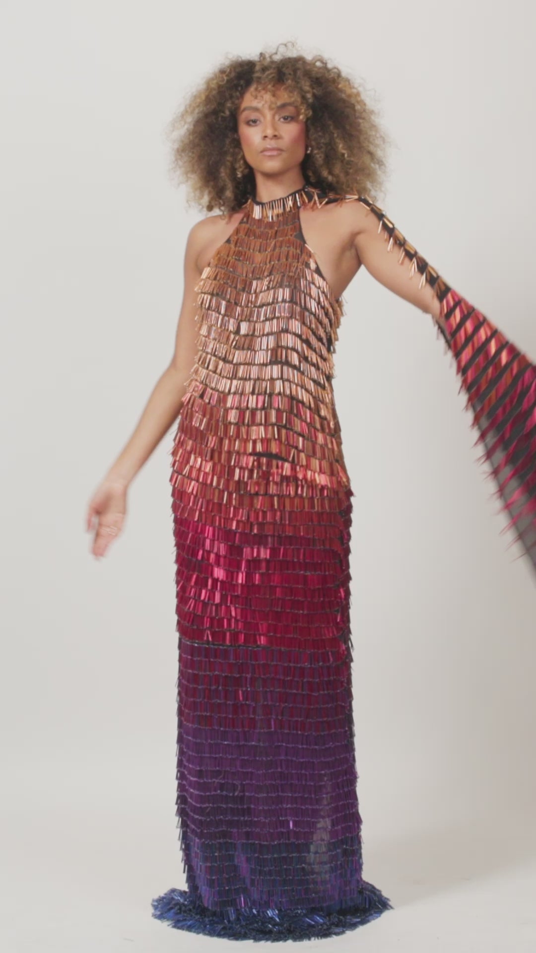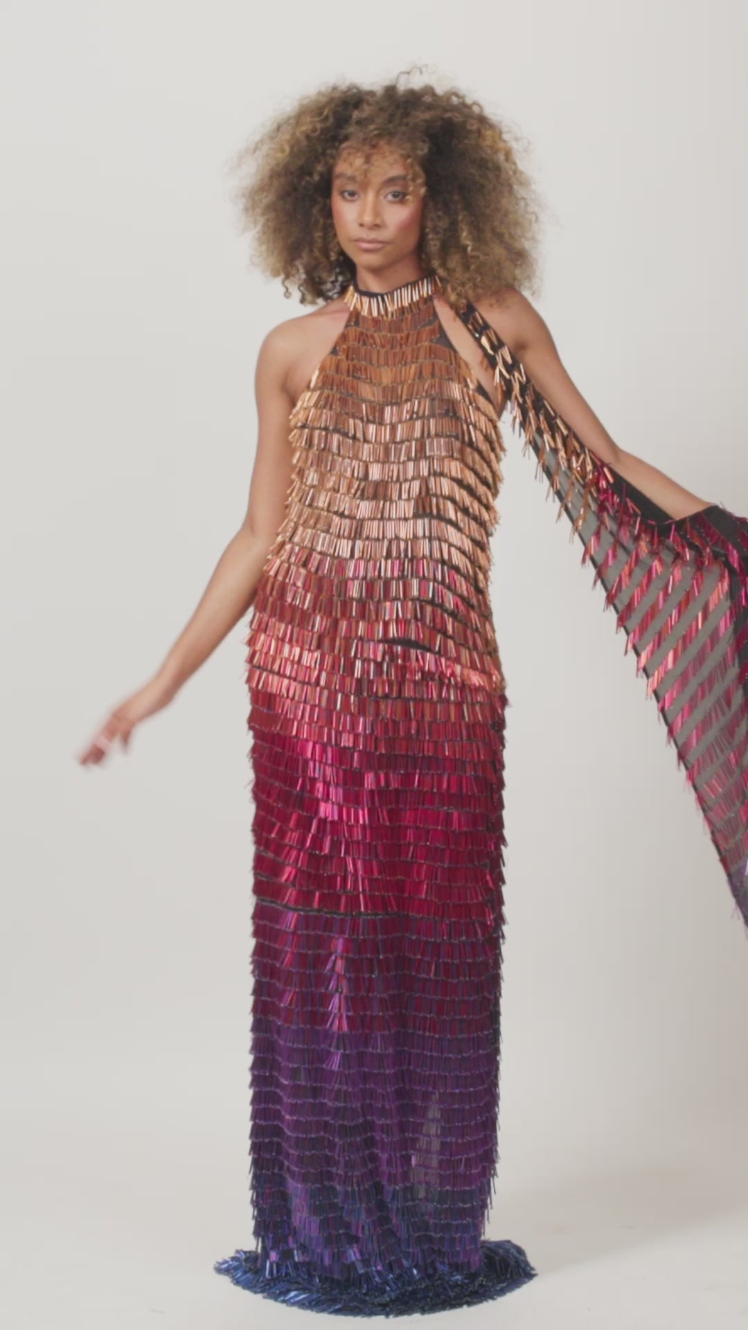 Hand beaded ombre effect fringe dress with crystal and stone bead highlights