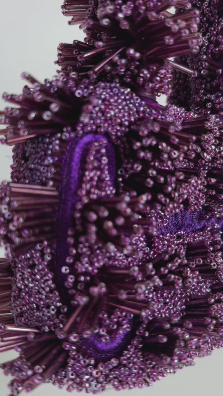The Zaza Bag is more than an accessory—it’s a wearable work of art. This mini-sized bag is crafted with a captivating mix of purple tones, creating a versatile and bold statement piece. Inspired by coral reefs, the Zaza Bag features intricate hand-beaded detailing and 3D spike embroidery, adding texture and dimension to its unique design. Perfect for both formal events and casual outings